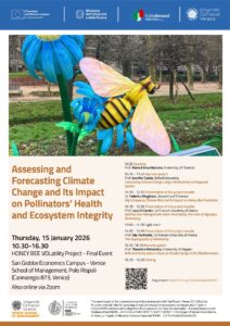15 January, 10.30-16.30, San Giobbe Economics Campus – Venice School of Management, Polo Rispoli (Cannaregio 873, Venice) – Also online via Zoom The workshop seeks to explore and discuss a broad range of perspectives on climate and environmental risks, from modelling and forecasting climate change to investigating the impacts of climate on honeybees’ health. The …
