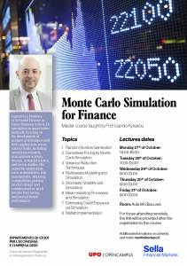 Corso “Introduction to Monte Carlo Simulation in Finance” (8ª edizione) tenuto dal Prof. Ioannis Kyriakou (Bayes Business School, City, University of London) Il corso si svolgerà all’interno della Laurea Magistrale Management & Finanza del DISEI – Università del Piemonte Orientale (Novara). Il corso, della durata complessiva di 16 ore e tenuto in lingua inglese, si …