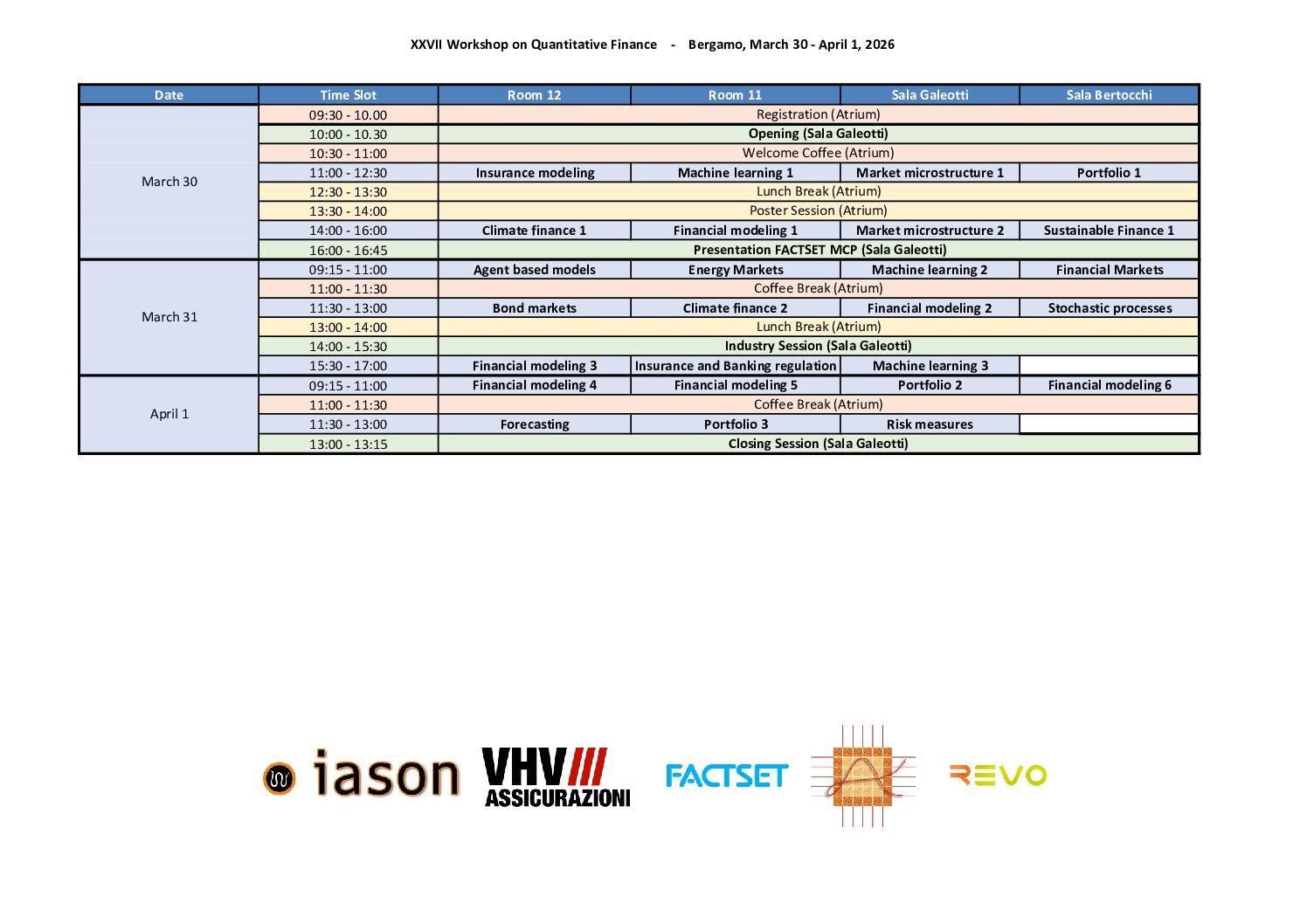 The organizing/scientific committees are happy to announce the Final program of the XXVII Workshop on Quantitative Finance (QFW2026).